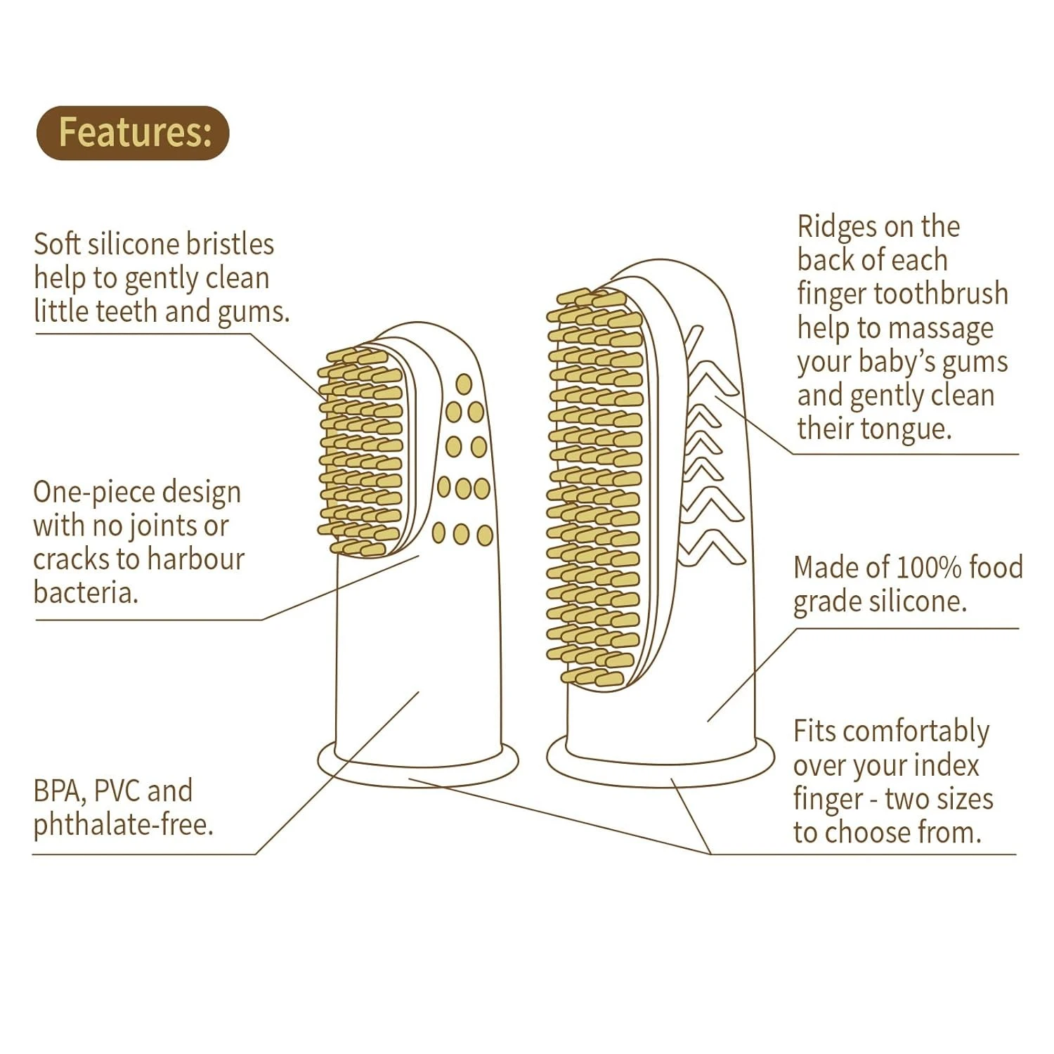 This pack includes two different sizes of our Silicone Finger Brush to ensure a comfortable fit.